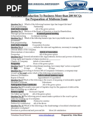Mgt211 Introduction To Business More Than 200 Mcqs For Preparation Of Midterm Exam Sales Marketing