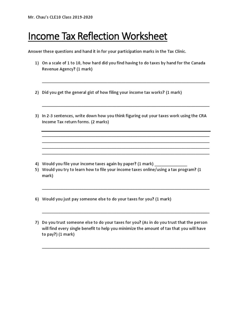 Income Tax Reflection Worksheet